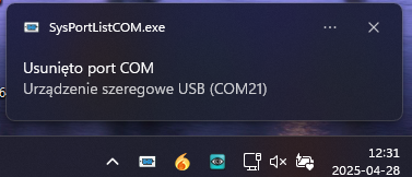 Aplikacja siedzi w SysTray'u. Po podłączenie/odłaczeniu do/z USB konwertera USB-RS232 pojawi się TooTip z odpowiednią informacją.